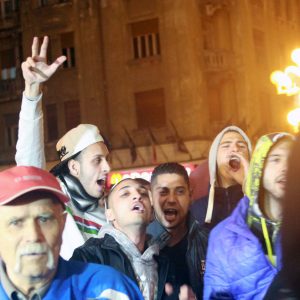 Notă discordantă au făcut un grup de tineri violenți, care s-au postat chiar în primele rânduri. Aceștia au început să scandeze „m… Ponta” și au devenit extrem de nervoși în momentul în care jurnaliștii au început să-i filmeze. „Ce vrei, mă, pleacă, mă de aici cu camera”, au răcnit aceștia în repetate rânduri”. La un moment dat, unul dintre ei a lovit camera unui reprezentant al televiziunii România TV. Grupul a continuat cu violența verbală, scandând întruna „m… Ponta”, dar și „m..e Iohannis”. Jandarmii i-au ridicat pe câțiva dintre scandalagii, moment în care aceștia au început să se lamenteze, acoperindu-și fețele la vederea camerelor: „dar ce-am făcut, asta ne e libertatea?”.