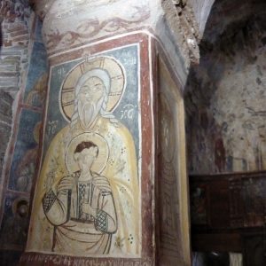 Pictura îmbină iconografia bizantină cu elemente narative şi folclorice, deosebită fiind o icoană care îl înfăţişează pe Iisus Christos copil, îmbrăcat într-o ie cu motive decorative tradiţionale din Ţara Haţegului.