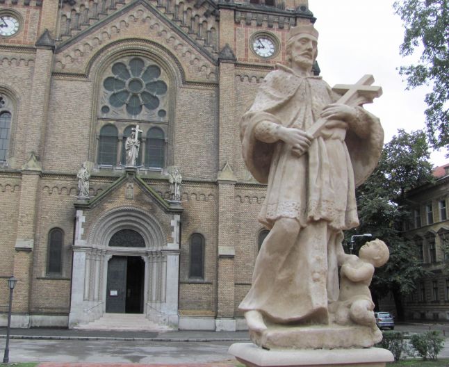 Statuia restaurată şi recent amplasată în Piaţa Romanilor, în faţa bisericii romano-catolice Millenium, care îl înfăţişează pe Sfântul Ioan Nepomuk, datează de la începutul secolului al XVIII-lea şi este cea mai veche statuie din Banat. Statuia sculptată în urmă cu aproape 300 de ani, cioplită în gresie, este opera unui sculptor necunoscut şi se remarcă prin simplitatea artistică, în care sfântul, îmbrăcat într-o mantie cu guler, este desculţ, cu o cruce în braţe, iar un îngeraş aflat la picioarele sale se uită rugător către el. Potrivit documentelor păstrate, în 1720 era amplasată în Piaţa de Paradă (actuala Piaţa Libertăţii), în faţa primăriei vechi, iar la sărbătoarea din 16 mai 1727, Sfântul Nepomuk a fost declarat patronul spiritual al catolicilor din Banat. În 1739, la mai bine de o lună după înmormîntarea ultimului răpus de marea epidemie de ciumă, s-au organizat procesiuni la statuia sfântului, în semn de recunoştinţă faţă de milostenia cerului a celor care au supravieţuit cumplitei molime. Locuitorii oraşului au făcut atunci legământ ca astfel de procesiuni să aibă loc în fiecare an şi „atât timp cât Dumnezeu atotputernicul va face posibilă locuirea în acest oraş Timişoara, în birturi dumnicile să nu fie permisă nici muzică nici muzicanţi…”. În 1756 statuia a fost mutată în zona actualului liceu Carmen Sylva, în dreptul unei porţi secundare a cazarmei ardelene, lângă vechea biserică a Sfintei Ecaterina, care a fost demolată când a început construirea zidurilor cetăţii habsburgice. Următorul loc în care a fost amplasată a fost lângă actualul pod Decebal, unde a stat până în 1908, iar de acolo a fost mutată pe locul actualului Ştrand Termal, ocupat, la vremea respectivă, de o parte din celebrele grădini ale oraşului. În 1932 statuia a ajuns în curtea bisericii romano-catolice din Iosefin şi a fost restaurată de sculptorul timişorean F. Gallas. Anul trecut a fost repusă în spaţiul public.