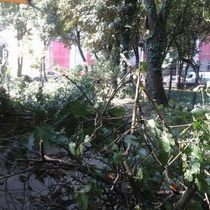 În Timișoara continua defrișarea copacilor sănătoși, fără nicio explicație coerentă. Tei tineri și arbuști au fost secerați, astăzi, la prânz.