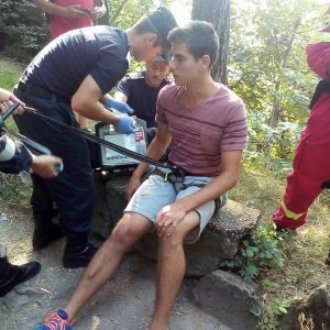 Echipele de intervenţie au coborât în rapel până la tânărul blocat, l-au asigurat şi l-au adus în siguranţă la sol. Aici a fost preluat de pompierii SMURD care i-au verificat starea de sănătate şi l-au transportat la UPU Deva, deoarece era slăbit şi prezenta puternice crampe musculare.
