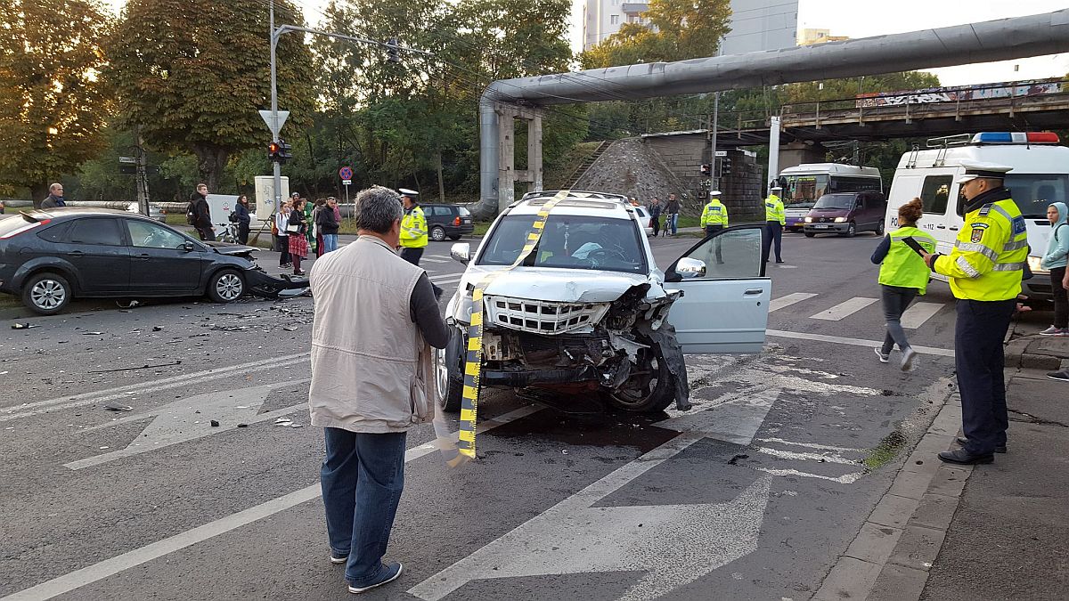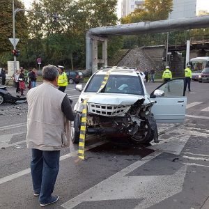 Șoferul unei mașini de teren care circula dinspre mall spre Piața Mărăști a vrut să vireze la stânga pe strada Demetriade, fără a acorda însă prioritate, iar un Ford Focus care circula din sens opus l-a izbit în plin. În urma impactului, șoferul din mașina mică a rămas prins în automobil, fiind nevoie de intervenția echipajelor de descarcerare. Toate cele trei persoane implicate în accident – șoferul mașinii de teren, șoferul și un pasager din Ford au ajuns la spital pentru îngrijiri medicale.
