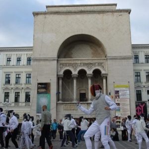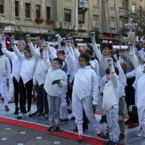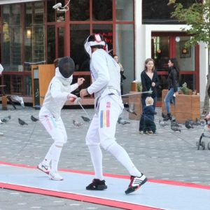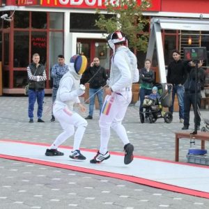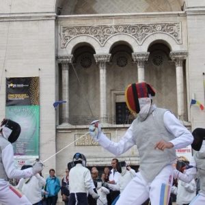 Timișoara s-a raliat altor zece orașe în acțiunea FlashMob România a FR Scrimă. Și în acest an Mihai Covaliu, președintele forului care se poate mândri cu unicul aur la Rio 2016, a ales să vină în Capitala Banatului. Zeci de sportivi tineri și de mare perspectivă au oferit celor prezenți o demonstrație cu câteva partide atractive.
