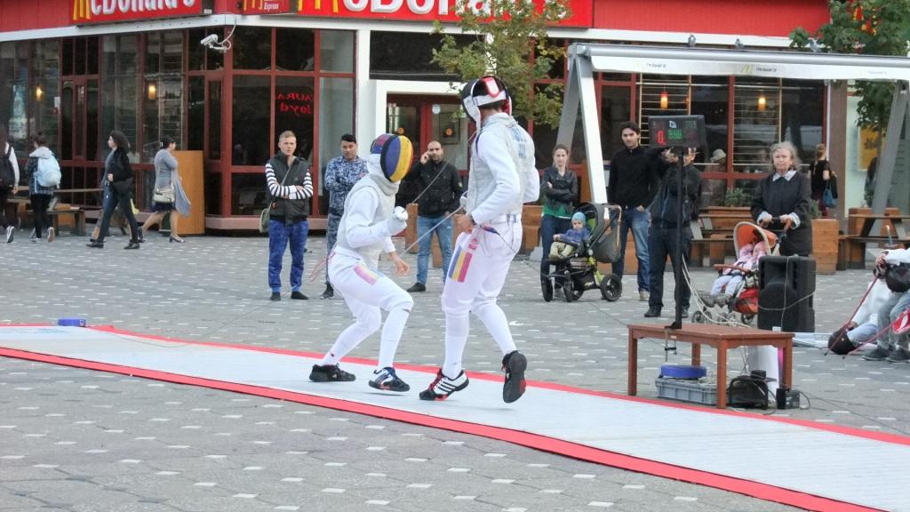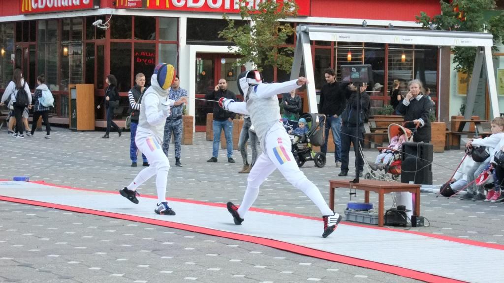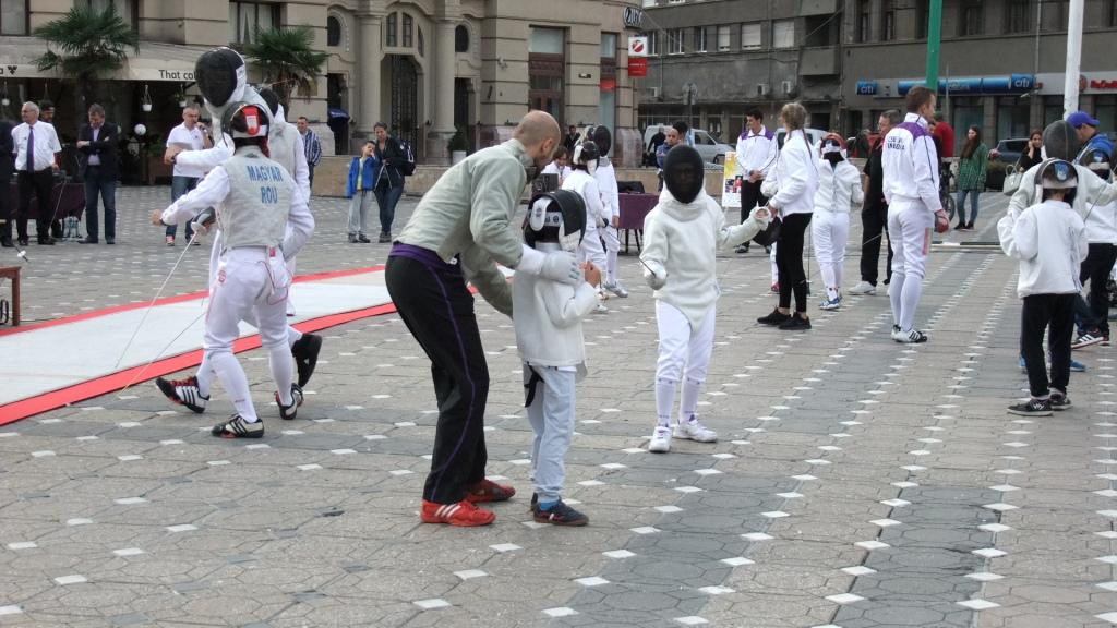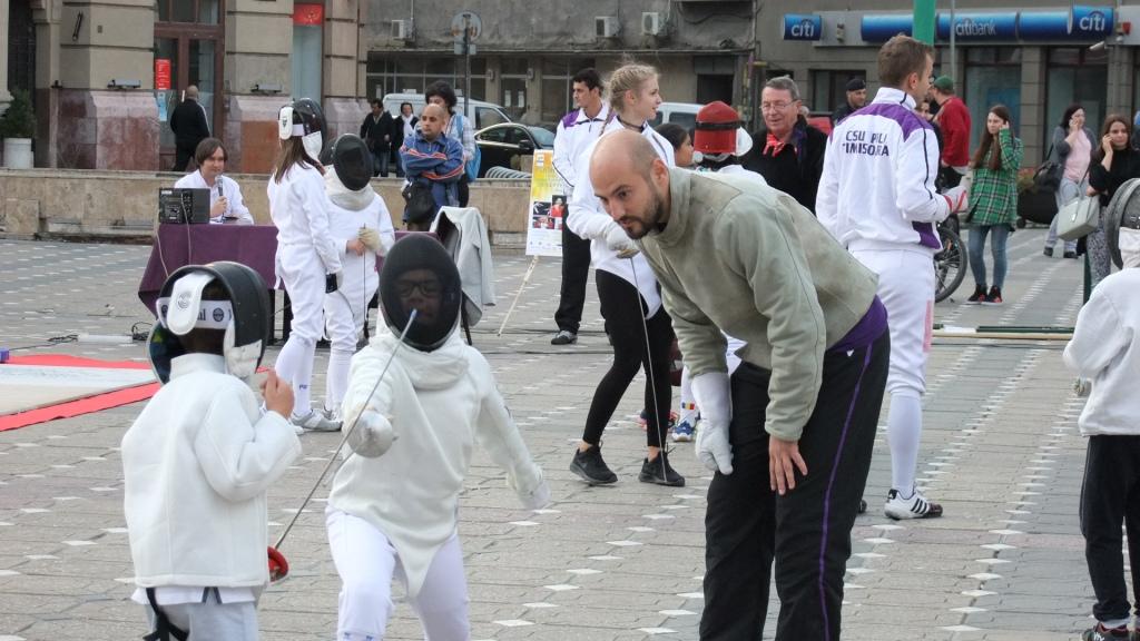 Timișoara s-a raliat altor zece orașe în acțiunea FlashMob România a FR Scrimă. Și în acest an Mihai Covaliu, președintele forului care se poate mândri cu unicul aur la Rio 2016, a ales să vină în Capitala Banatului. Zeci de sportivi tineri și de mare perspectivă au oferit celor prezenți o demonstrație cu câteva partide atractive.