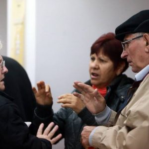 În fiecare duminică, zeci de credincioși surdo-muți se adună în lăcașul de cult. Aici, se simt ca într-o mare familie. Asta pentru că au ajuns să se împrietenească tot venind la slujbe, plus că au cu cine să comunice prin limbajul semnelor. „Persoanele surdo-mute vin în fiecare duminică pentru a participa la slujba de Liturghie, dar mai vin cu un scop. Biserica a devenit pentru ei locul în care se întâlnesc să vorbească, să socializeze. Credincioșii sosesc cu 10-15 minute înainte de începerea slujbei pentru a vorbi cu mine sau între ei, iar după ce Liturghia se termină, se așează la intrarea în paraclist pentru a povesti. Își spun și bune, și rele. E o bucurie pentru ei să vină la biserică. Suntem ca într-o familie”, spune părintele Eugen Bendariu.