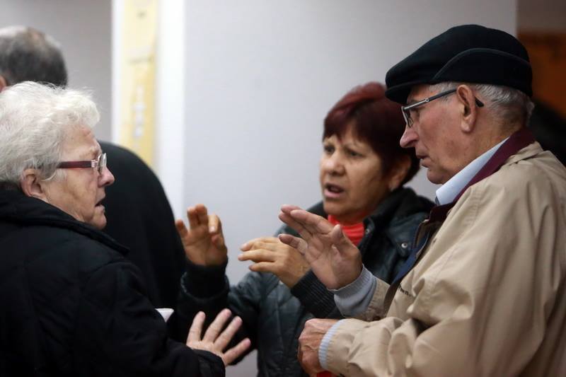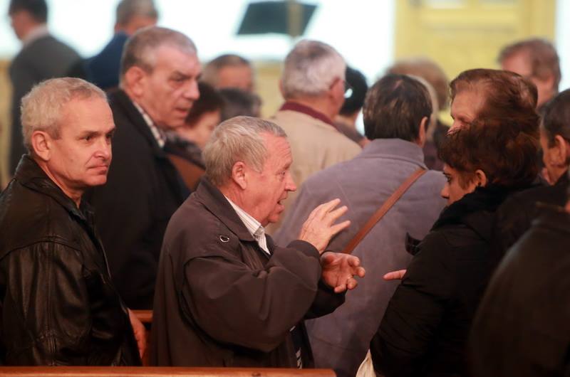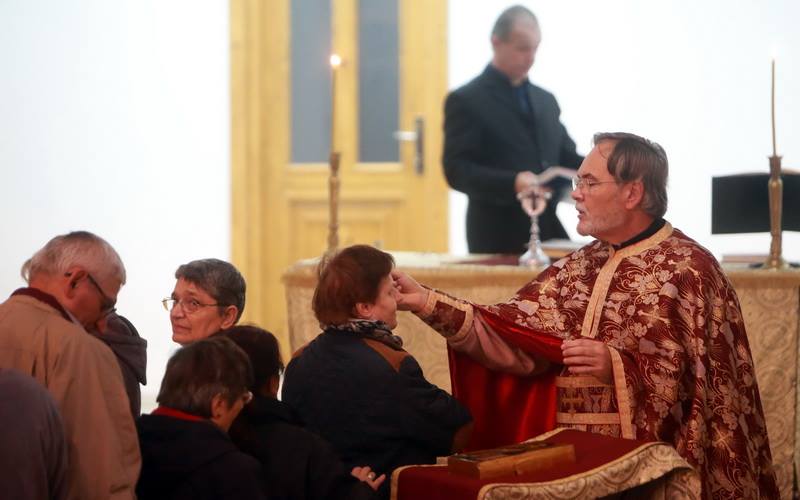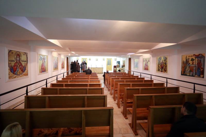 În subsolul bisericii din Piața Sinaia din Timișoara este o liniște aproape de mormânt. Tăcerea este spartă doar de scârțâitul ușii și de cântecele bisericești care abia se aud de sus. 30 de suflete se află în încăpere, așezate pe scaune. Niciunul dintre oamenii prezenți nu par să fie deranjați de sunete. Asta pentru că nu le aud. Credincioșii privesc cu atenție spre partea din față a paraclistului. Imediat, încep să-și facă cruce, iar preotul ridică mâna dreaptă, cu degetul mare în sus, pe care o coboară apoi ușor pe palma stângă. Este semnul pentru „Amin”.