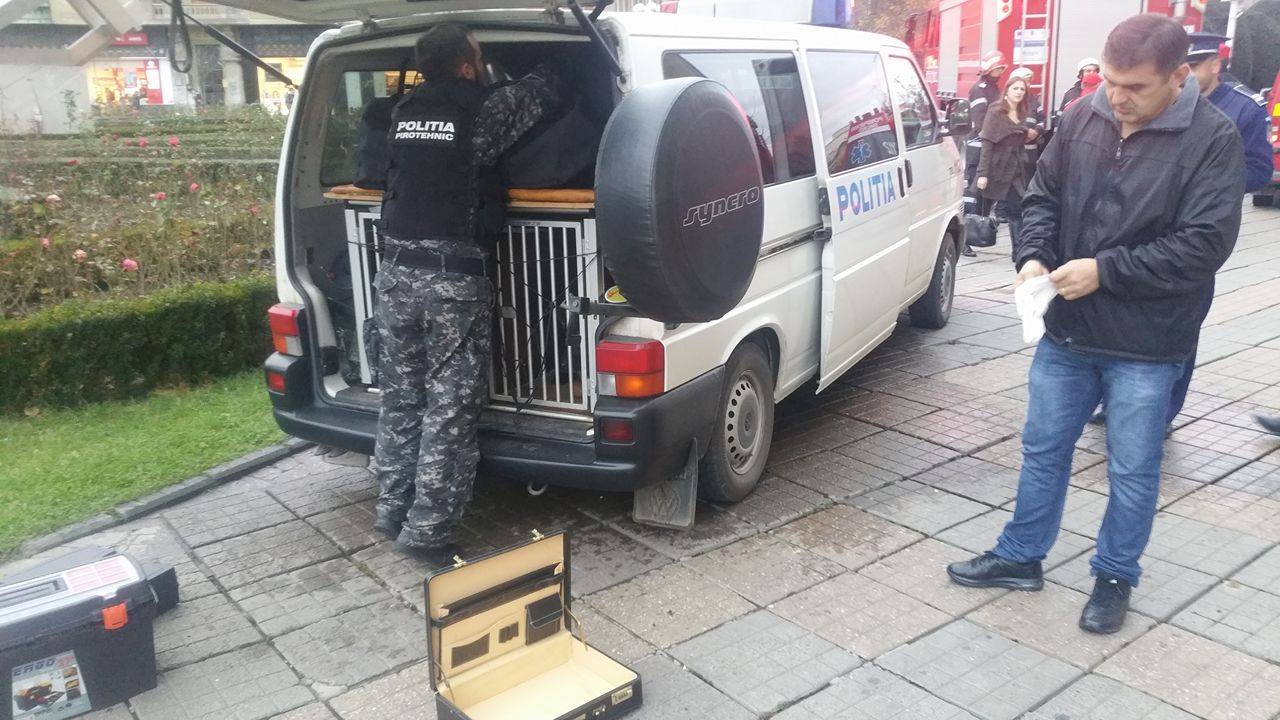 Valiza se afla între un coș de gunoi și un stâlp, iar zona a fost imediat blocată de polițiști, la fața locului sosind echipaje de pompieri și SMURD.