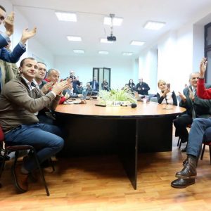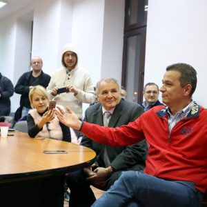 Camera în care a fost instalat televizorul a început să se umple cu aproximativ zece minute înainte de ora 21.00. Deşi victoria partidului la nivel naţional era una certă ca urmare a sondajelor, scorul a fost aşteptat cu nerăbdare de Grindeanu care cu greu şi-a luat privirea de la televizor.