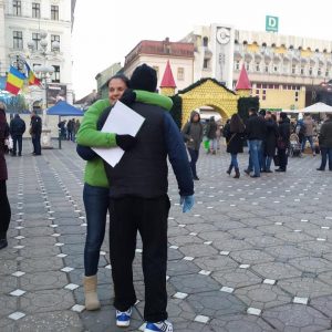 “Scopul acțiunii este de a aduce zâmbete, să ne unim și noi un pic ca oameni, să nu mai fim așa de individualiști și separați și să ne simțim bine. Majoritatea abia așteaptă o îmbrățișare, încep să zâmbească și apoi își deschid mâinile să se lase îmbrățișați. Unii, într-adevăr, sunt prea grăbiți să acorde timp pentru asta, dar noi mergem mai departe și încercăm să deschidem cât mai multe inimi. Suntem vreo 70 de oameni care îmbrățișăm în acest moment în Piața Operei”, ne-a povestit Denis Ardelean, voluntar în cadrul Asociației Look Inside.