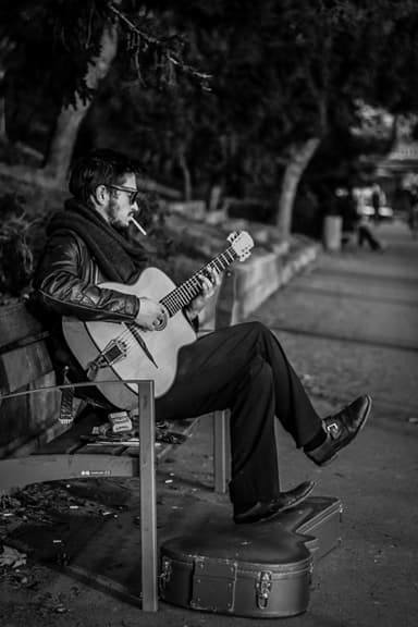 „Am 31 de ani şi sunt pasionat de Europa de Est şi în special de România de demult. De loc sunt din Paris, dar am început să cânt pe străzi, la vârsta de 19 ani, la Londra. Mai apoi, am cântat în multe locuri din Europa şi am ajuns la Timişoara pentru prima oară anul trecut. Am revenit în oraş acum aproape două luni. Îmi place muzica tradiţională românească şi accentul bănăţenesc. Îmi place gypsy-music, ador muzica cântată de Maria Tănase sau Grigore Leşe. În ţările vestice sunt mulţi buskeri, am fost mirat să văd că în Timişoara sunt atât de puţini. Am fost la Casa De Cultură unde am obţinut un permis din partea autorităţilor pentru a cânta pe stradă, în Timişoara. Îmi place ceea ce fac pentru că e o chestie spontană. Copiii sunt de obicei cel mai bun public pentru cei care cântă pe străzi. Uneori primeşti bani de la trecători, alteori nu. De-a lungul anilor am cântat şi în câteva trupe, dar atunci când călătoreşti mult este foarte dificil să pui bazele unei trupe serioase. M-am îndrăgostit de Timişoara de cum am ajuns aici. Îmi plac clădirile, îmi plac oamenii de aici, transmit o vibraţie pozitivă. Am mulţi prieteni în Budapesta, în Bulgaria şi în Belgrad şi Timişoara e cumva la mijloc între acestea.