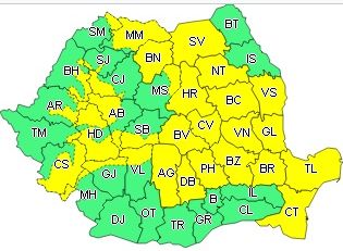 Codul galben va afecta, total sau parțial, cele 32 de județe.