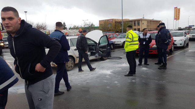 În timp ce bărbatul se afla în supermarket, din mașină a început să iasă fum. Trecătoriii au sunat la 112, iar la fața locului a sosit imediat un echipaj de la Pompieri, dar și unul de la Poliție.