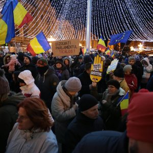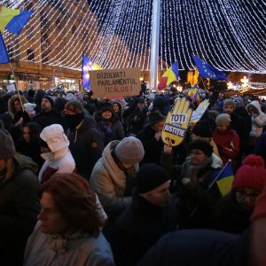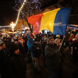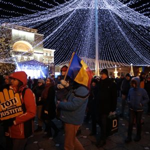UPDATE 2 Protestatarii au „migrat” spre singurul loc din Piața Victoriei care nu este ocupat de târgul de Crăciun, platoul de peste drum de Catedrala Mitropolitană.