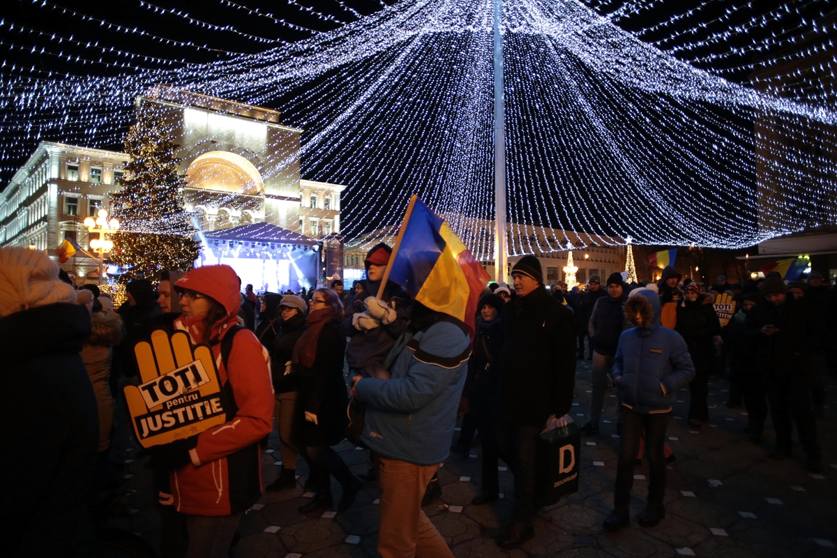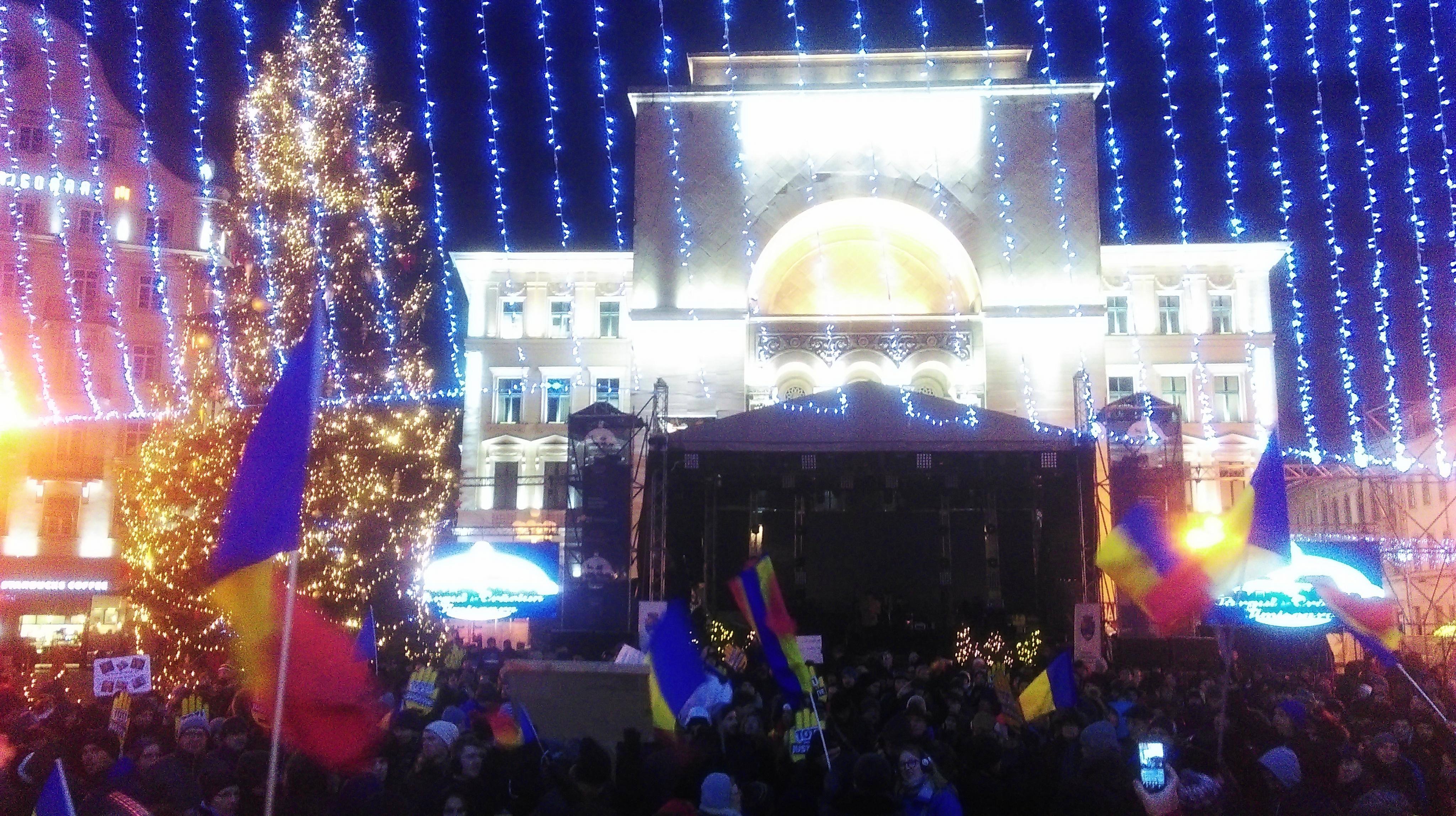 UPDATE 2 Protestatarii au „migrat” spre singurul loc din Piața Victoriei care nu este ocupat de târgul de Crăciun, platoul de peste drum de Catedrala Mitropolitană.