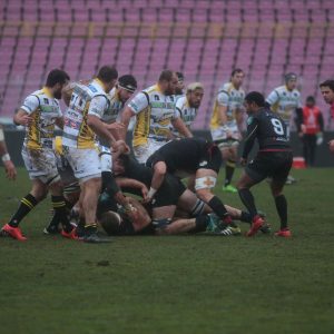 Finalul nu a fost deloc ușor pentru campioana României. Liderul din Eccellenza a forțat dar nu a mai reușit decât trei puncte, dintr-o nouă penalitate, cu zece minute înainte de final. Lovitură de pedeapsă acordată după un placaj înalt făcut de Tangimana Fonovai, ”infracțiune” pentru care ”sarazinul” a văzut cartonașul roșu.