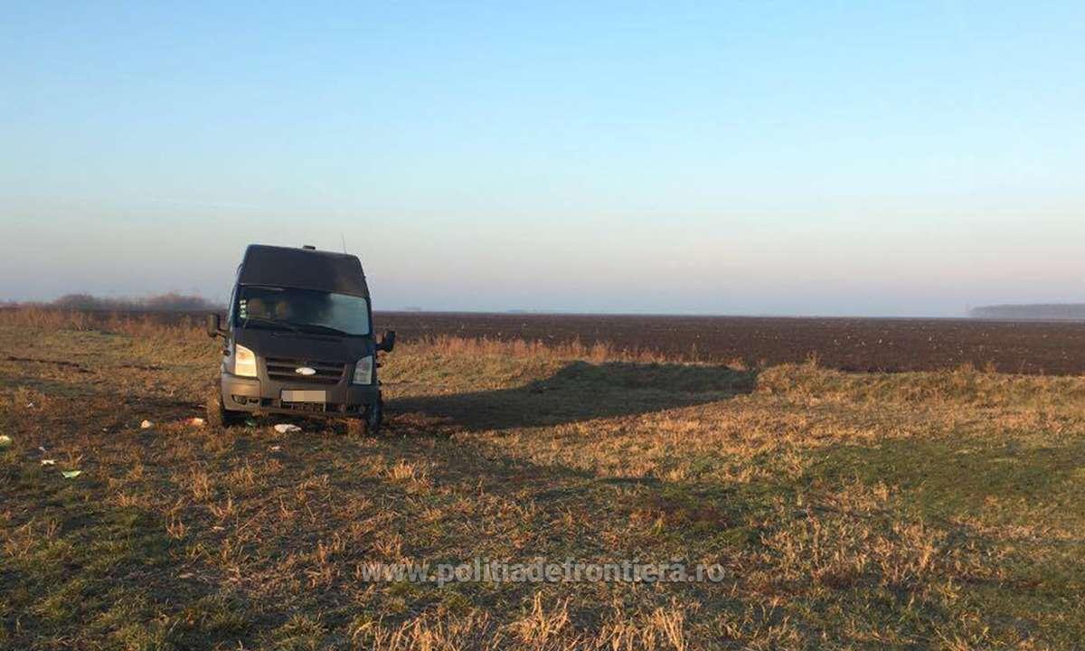 Zeci de migranţi ilegali, abandonați într-un microbuz lângă graniţa de vest. Cum au fost depistați de polițiști FOTO