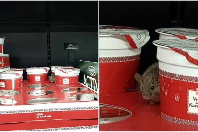 Șoarece filmat plimbându-se printre iaurturi, în supermarket. Ce spun reprezentanții magazinului FOTO VIDEO