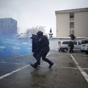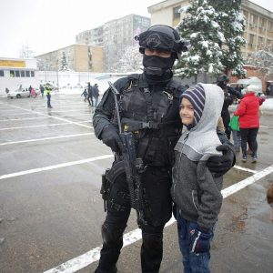 Mascaţii de la Serviciul de Acţiuni Speciale au făcut spectacol în cadrul unei demonstraţii de anihilare a unui grup de infractori, demonstraţie în cadrul căreia s-au tras focuri de armă. La final, micuţii s-au înghesuit să îşi facă poze cu tehnica din dotarea poliţiştilor, dar şi cu luptătorii Serviciului de Acţiuni Speciale.