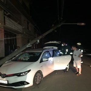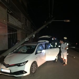 Stâlpul a fost rupt de la bază în urma impactului. La faţa locului, după un apel la 112 al unui locatar, au sosit echipaje de la pompieri, ambulanţă şi poliţie, dar şi o echipă de la ENEL pentru a restabili curentul electric din zona afectată.