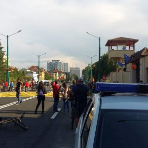 Manifestanții care s-au adunat pe str. Popa Șapcă nu au scandat nimic, însă s-au plimbat de mai multe ori atât pe carosabil, dar și pe carosabil, pentru a testa spațiul respectiv, timp în care au claxonat. Li s-au alăturat iubitorilor mersului pe două roți și pietoni.