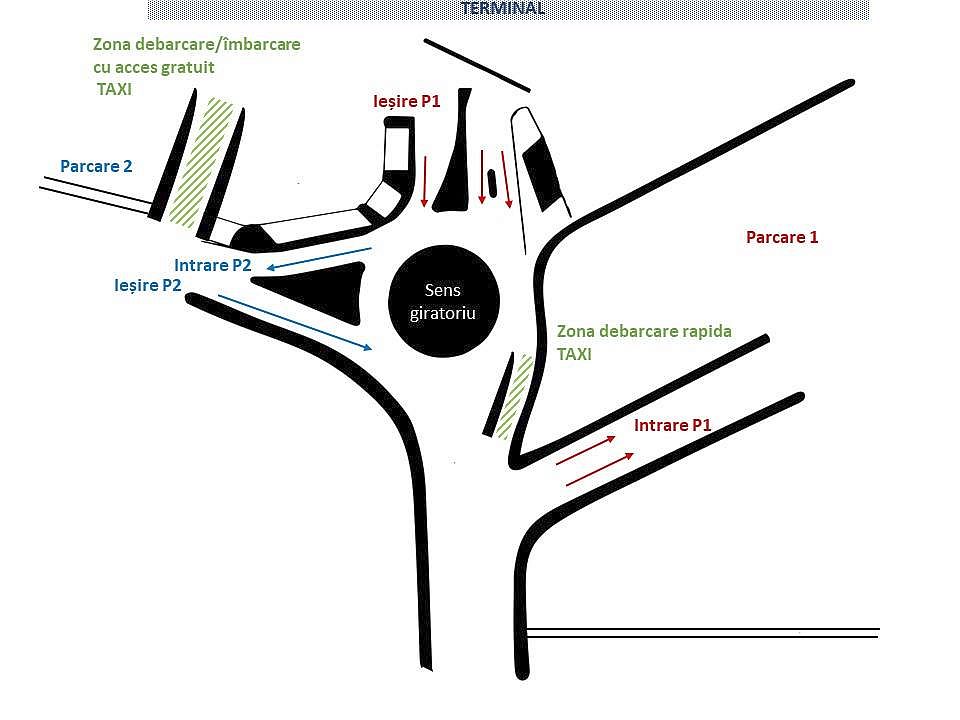 Odată cu deschiderea noilor facilități de parcare, va fi suplimentat și numărul de intrări și ieșiri în/din parcare și va fi schimbate fluxul de circulație, pentru a asigura o circulaţie optimă a autoturismelor. Astfel, intrarea în Parcare se va face prin parcarea nouă, situată în partea dreaptă înainte de sensul giratoriu, iar ieșirea se va asigura prin cele trei bretele de acces din sensul giratoriu.