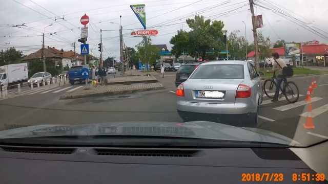 Eveniment greu de crezut surprins în trafic de un şofer, azi-dimineaţă, în Timişoara. Un biciclist a fost literalmente „fugărit” cu maşina de un bărbat, după ce conducătorul auto l-a lovit pe acesta în timp ce se deplasa cu bicicleta pe trecerea de pietoni.