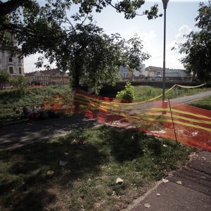 Nici țipenie de muncitor pe șantierul de pe Podul Dragalina. Lucrările au început în această vară, însă nu s-a muncit prea mult. Nicolae Robu, primarul Timișoarei, ne-a declarat, astăzi, că lucrările au fost stopate pentru că una scria pe hârtie, iar alta s-a constatat pe teren în ceea ce privește rețelele de utilități din subteran.
