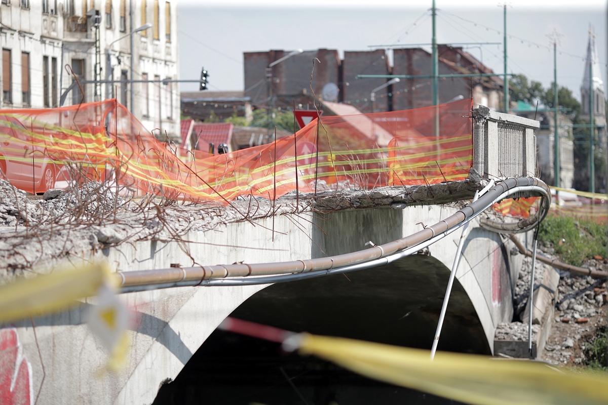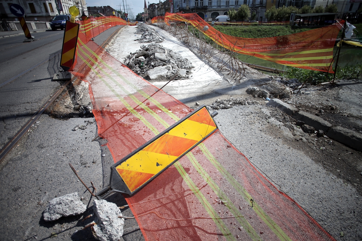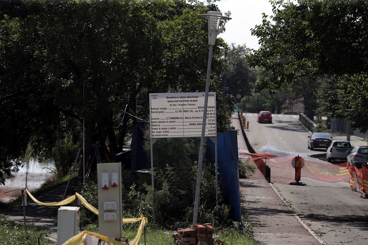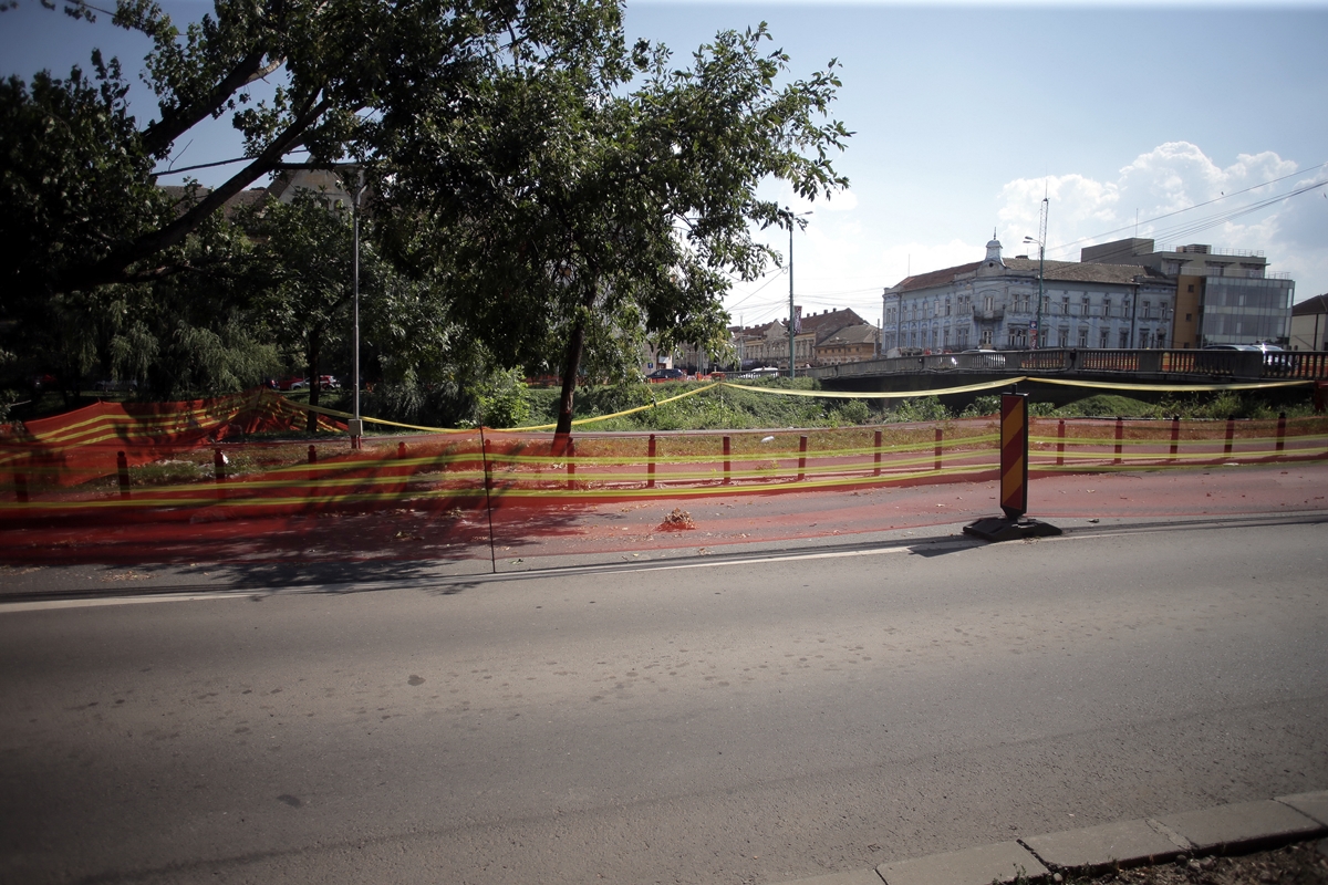 Nici țipenie de muncitor pe șantierul de pe Podul Dragalina. Lucrările au început în această vară, însă nu s-a muncit prea mult. Nicolae Robu, primarul Timișoarei, ne-a declarat, astăzi, că lucrările au fost stopate pentru că una scria pe hârtie, iar alta s-a constatat pe teren în ceea ce privește rețelele de utilități din subteran.