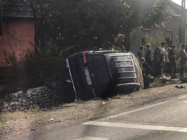 În incident au fost implicate două autoturisme, unul dintre acestea a ajuns în şanţul de pe marginea drumului.