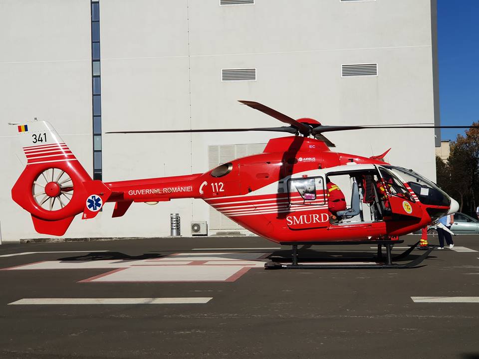 Elicopterul SMURD a aterizat la Timişoara în jurul orei 10:30.