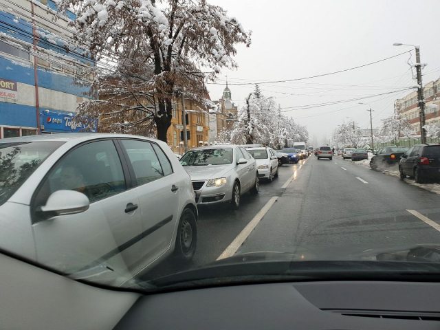 Zăpada căzută în weekend provoacă în continuare probleme mari în traficul din Timișoara, chiar și la mai bine de două zile de la ultimul fulg căzut.