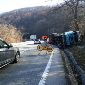 Circulație îngreunată pe DN 6, șoseaua care leagă Băile Herculane de Caransebeș, în județul Caraș-Severin, după ce un autotren a intrat cu viteză într-o curbă și s-a răsturnat. Incidentul s-a produs în această dimineață, în jurul orei 9.30, între localitățile Plugova și Crușovăț, iar circulația se desfășoară îngreunat, pe o singură bandă, conform Direcţiei Regionale de Drumuri şi Poduri Timişoara, care gestionează drumurile publice din partea de vest a României.