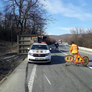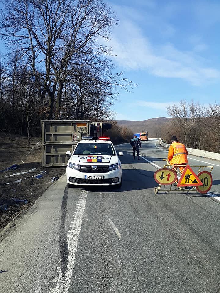 Conform DRDP Timișoara, există probabilitatea ca drumul să fie închis, pentru o scurtă perioadă de timp, în momentul în care se va ridica autotrenul răsturnat.