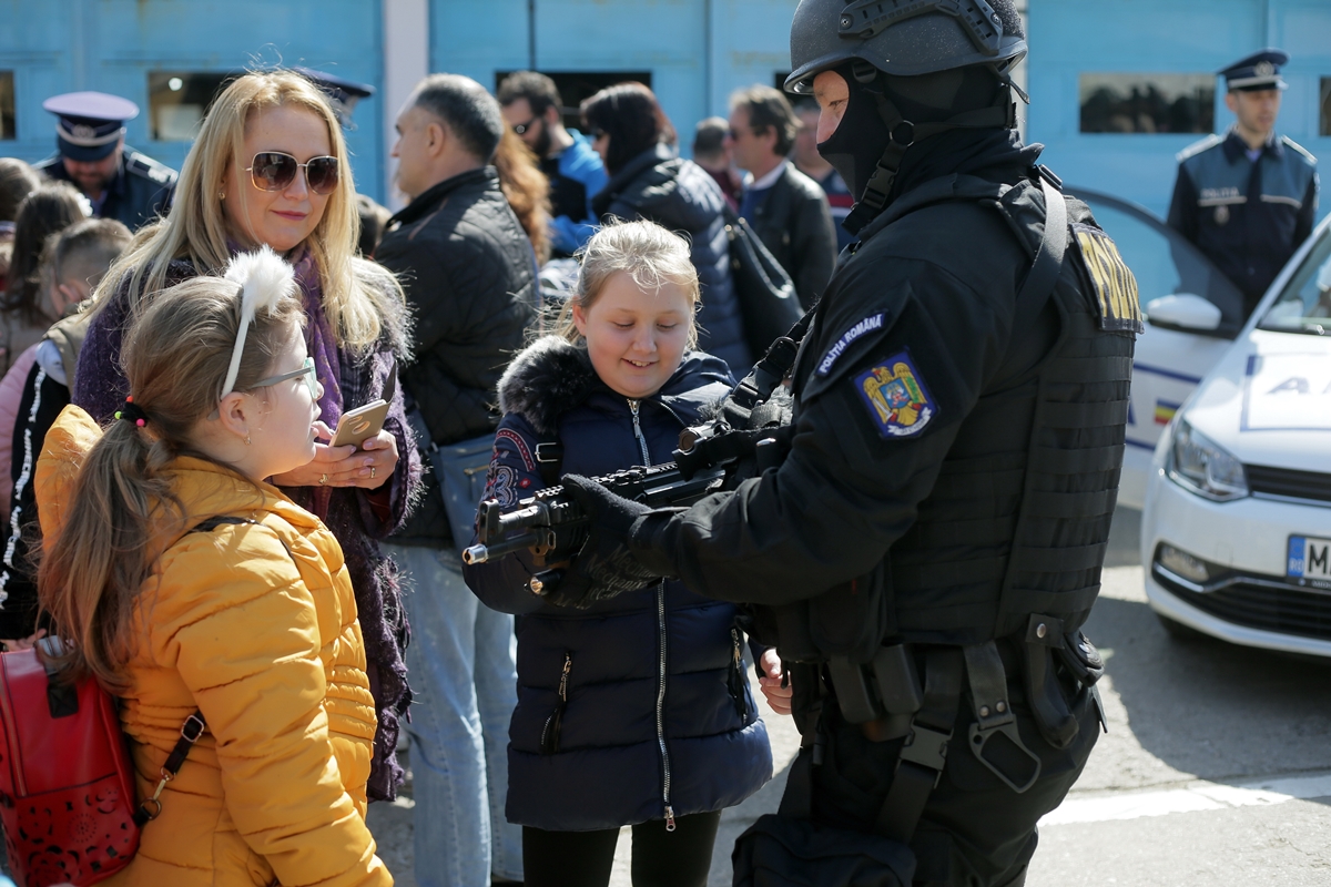 „În contextul sărbătoririi Zilei Poliției Române, eveniment marcat în fiecare an în data de 25 Martie, astazi la sediul IPJ Timiș, s-a organizat Ziua Porților Deschise, prilej cu care oamenii legii se află tot alaturi de cetățeni pentru a sărbători, dar si pentru a le prezenta elementele de tehnică și dotare, cat si mijloace și metode folosite pe parcursul intervențiilor la evenimente. De asemenea, s-au executat si demonstrații de dresaj cu câinii din dotare, dar si demonstrații de luptă și intervenție de către luptătorii SAS. Sărbătorim 197 de ani de tradiție și continuitate a Poliției, în slujba cetățenilor”, a transmis IPJ Timiș.