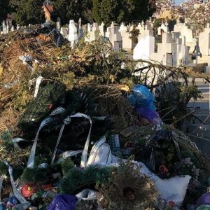 „Am venit degeaba. Floarea și lumânarea ar trebui să le duc la administrația primăriei. Nu știu dacă vă puteți imagina cât poate fi de mare, lung și lat, acest morman gigant de gunoi în cimitirul din Calea Şagului. Eu, personalul, şi nu doar eu, nu mai pot să ajung la mormântul mamei mele cu o floare și o lumânare. Pentru că acestă problemă i-am arătat-o lui Nea’ Robu, a fost atât de deranjat încât nu mai pot să îi reamintesc personal acest lucru. Pe lângă faptul că stau deja gunoaie şi pe morminte, mai sunt și zeci de șobolani care ajung să se hrănească cu cadavre”, a scris pe Facebook o timișoreancă revoltată de modul în care a ajuns să arate cimitirul din Calea Șagului. Femeia susține că, în unele locuri, mormanele de gunoi au și doi metri înălțime.