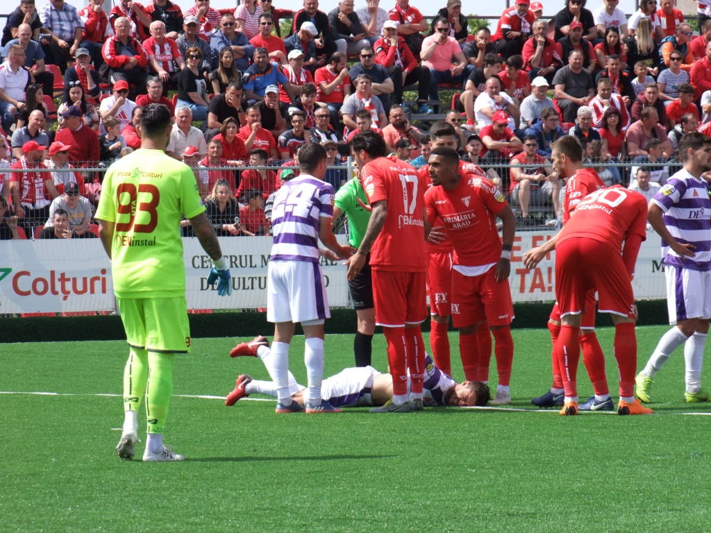 Mai mult, pe final, arădenii au rămas in inferioritate numerică după eliminarea lui Neagu, care l-a oprit pe Ursu din drumul către poartă.