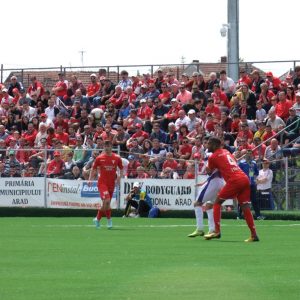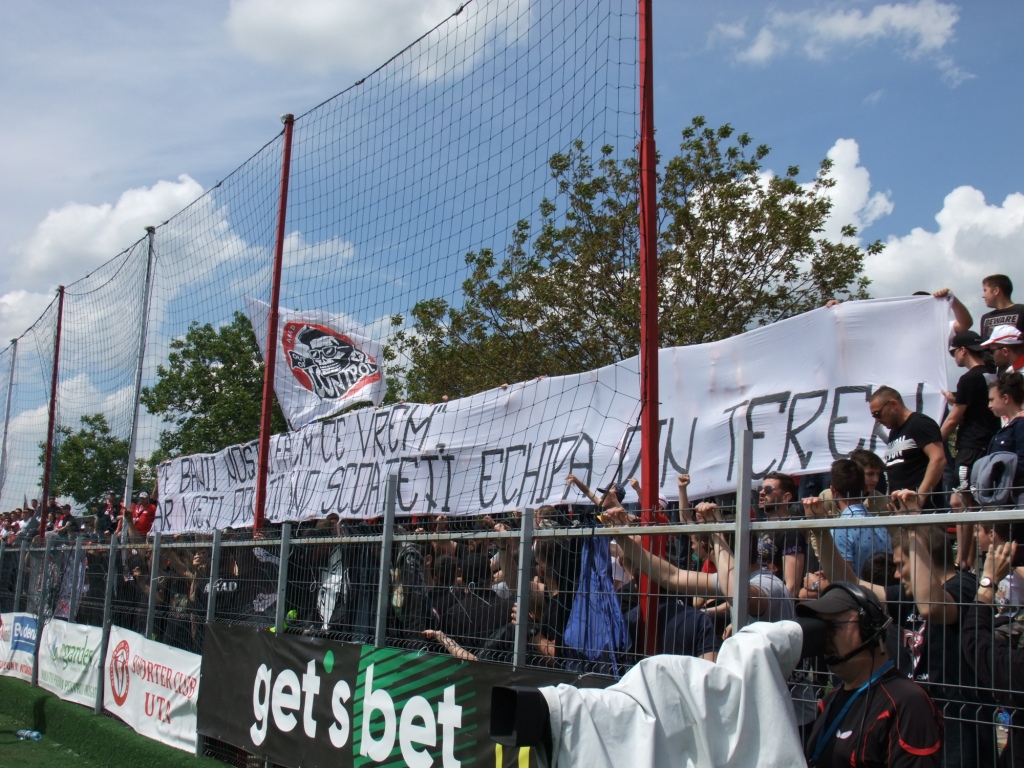 În sfârşit cu două galerii la Arad, noul Derby al Vestului a fost cu adevărat derby. Cei patru sute de fani ai oaspeţilor au avut un sector incăpător din care s-au făcut bine auziţi, iar UTA a avut un public pe măsura posturei de gazdă. Jucătorii s-au ridicat cu greu insă la nivelul publicului.