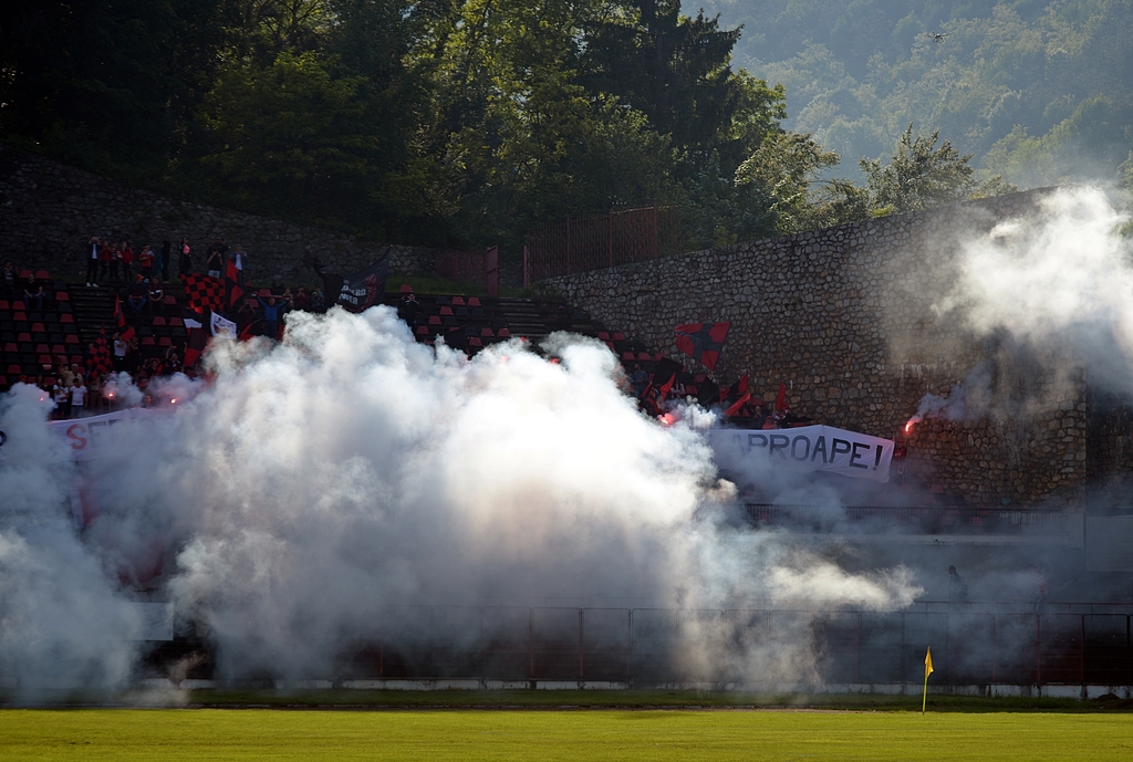 Reşiţenii au umplut pe jumătate bătrâna arenă din Valea Domanului şi atmosfera a fost una ca-n vremurile bune. Gazdele s-au mobilizat exemplar, au vândut din timp bilete la probabil cel mai intens mediatizat meci din Caraş din ultimii ani şi elevii lui Leontin Doană au fost purtaţi către victoria finală.