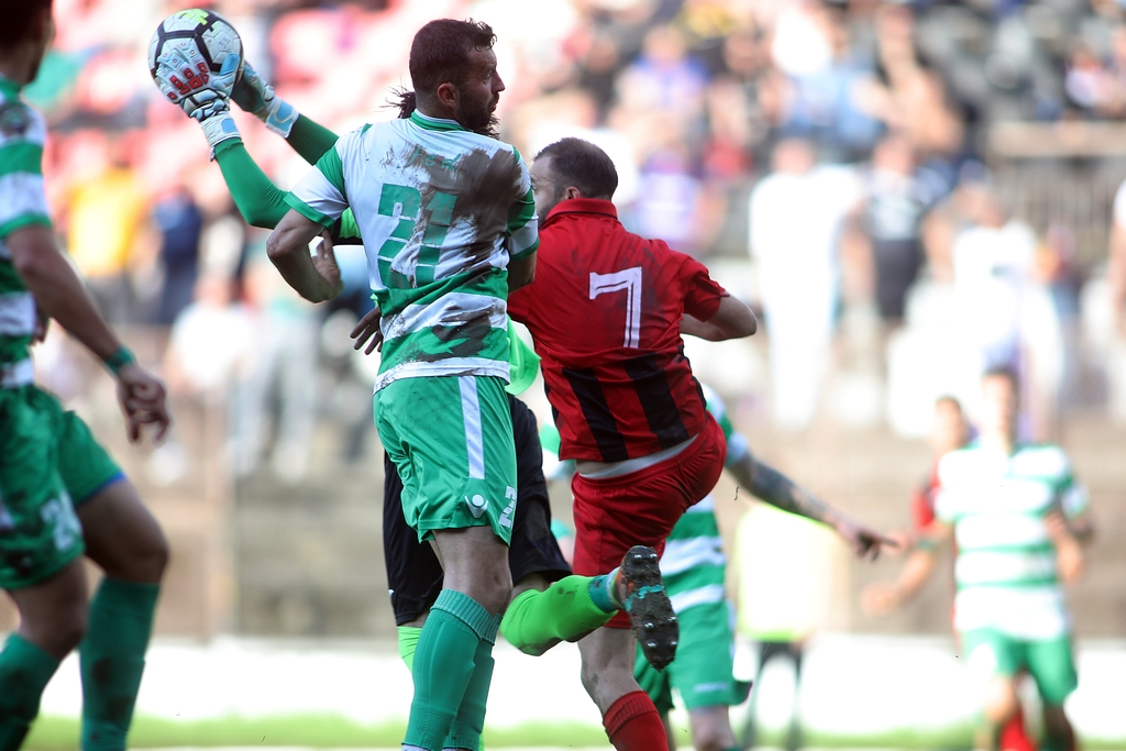 Scorul a fost deschis de Dumitru Ene în minutul 14, dintr-un penalty obţinut de Velcotă. Mai mult, oaspeţii au rămas înainte de pauză în zece oameni după eliminarea lui Telescu. În spaţiul umplut de ultraşi se declanşase deja fiesta. În repriza a doua Alin Babei a risipit orice emoţie cu golul de 2-0 din minutul 73.