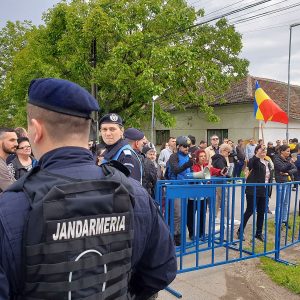 Astfel, în fața primăriei din Giarmata Vii au fost mobilizați zeci de jandarmi, fiind creat un perimetru delimitat de gardurile folosite de obicei la proteste. Protestatarii ținuți astfel la distanță scandau „PSD, ciuma roșie!”, „Hoții, hoții!”, „Rezistăm, nu cedăm!”, „Analfabeta!” sau „Jos PSD!”, și se foloseau de mai multe portavoci pentru a face gălăgie. Pe măsură ce te apropiai, însă, de clădirea primăriei din Giarmata, scandările celor câteva zeci de protestatari erau acoperite de muzica dată tare care răsuna din difuzoarele din zona instituției.