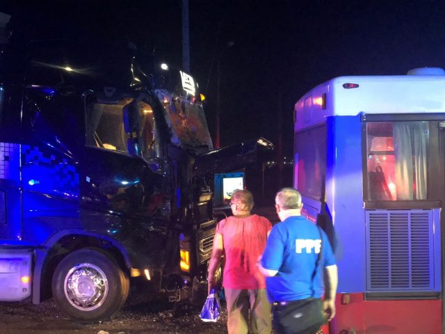 Un accident grav s-a petrecut, aproape de miezul nopții, după ce un autobuz plin cu oameni a fost lovit de un camion.