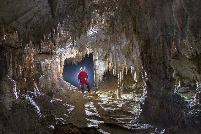 Etajul fosil al peşterii reprezintă o grandioasă succesiune de galerii şi săli, legând cele două intrări opuse, Comarnic şi Ponicova, şi are ectoare bogate în speleoteme de o frumuseţe deosebită (Sala Zebrelor – pereţi cu dunga de silex negru, Orga Mică, Orga Mare, Muzeul – Zidurile Chinezeşti, Opera, Sala de Cristal, Sala Domului, Sala Virgină).