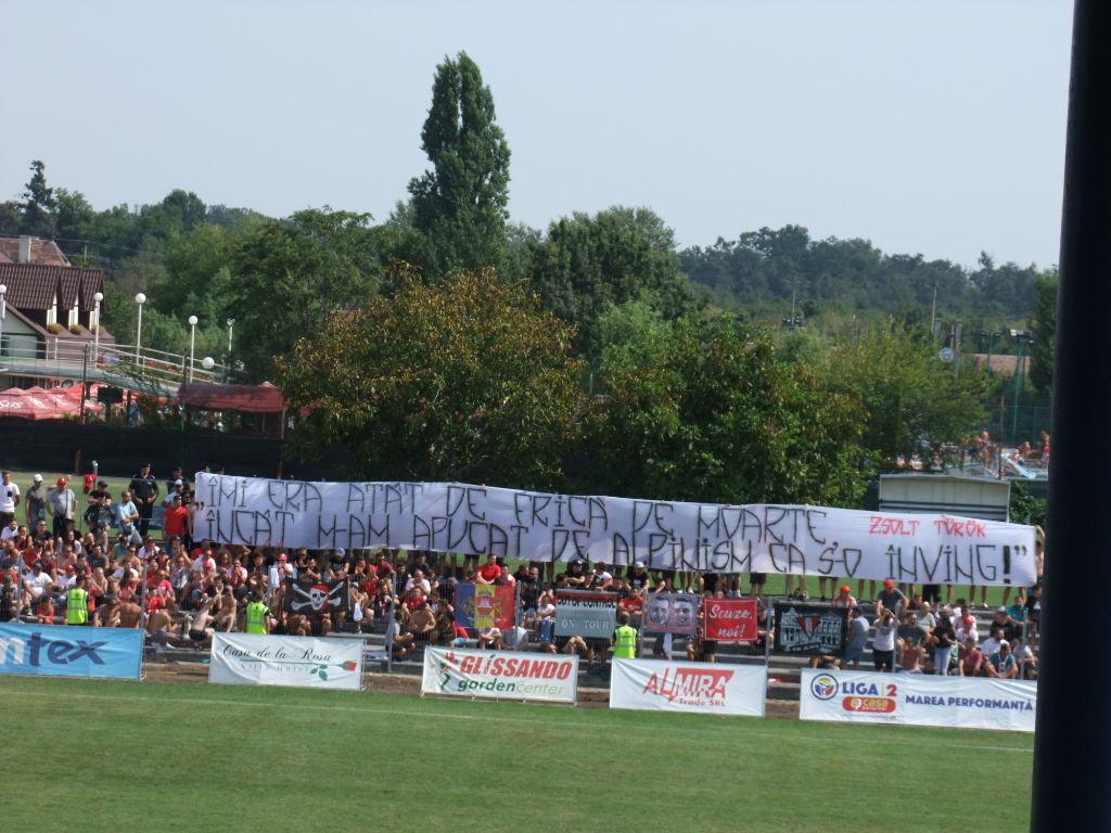 În prima repriză fanii utişti, deplasaţi în număr mare la Timişoara, au afişat un mesaj în memoria alpinistului Zsolt Torok, care şi-a pierdut viaţa săptămâna trecută. „Îmi era atât de frică de moarte / Încât m-am apucat de alpinism ca s-o înving!”, a fost scris pe bannerul afişat de galeria lui UTA.