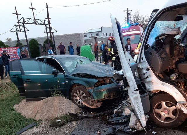 UPDATE Conform polițiștilor, in bărbat, de 63 de ani, a condus o autoutilitară pe strada Hezerisului dinspre Lugoj înspre centura ocolitoare,iar la un moment dat a efectuat o depășire neregulamentară, intrând în coliziune cu un autoturism condus de un bărbat, de 50 de ani,care circula regulamentar din sensul opus de mers. În urma impactului două persoane au fost rănite grav( șoferul de 50 de ani și o fetiță de 15 ani, pasagera in același autoturism) și 4 persoane rănite ușor respectiv șoferul autoutilitarei, o femeie de 53 de ani-pasagera in autoutilitara și doi băieți de 16 și 17 ani,pasageri în autoturism. Șoferul microbuzului s-a ales cu dosar penal pentru vătămare corporală din culpă.