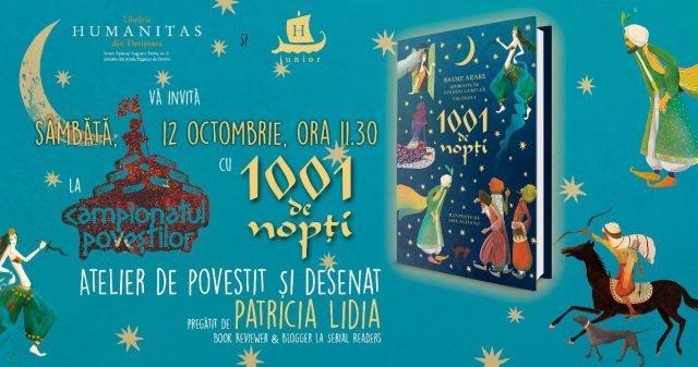 Librăria Humanitas din Timişoara găzduieşte sâmbătă, 12 octombrie, de la ora 11.30, cea de-a doua ediţie a campionatului poveştilor, cu basmele arabe din „1001 de nopţi” repovestite de Eusebiu Camilar, într-un volum apărut la editura Humanitas şi ilustrat de Ana Alfianu, în cadrul unui atelier de povestit şi desenat, coordonat de Patricia Lidia Popescu Cevei.