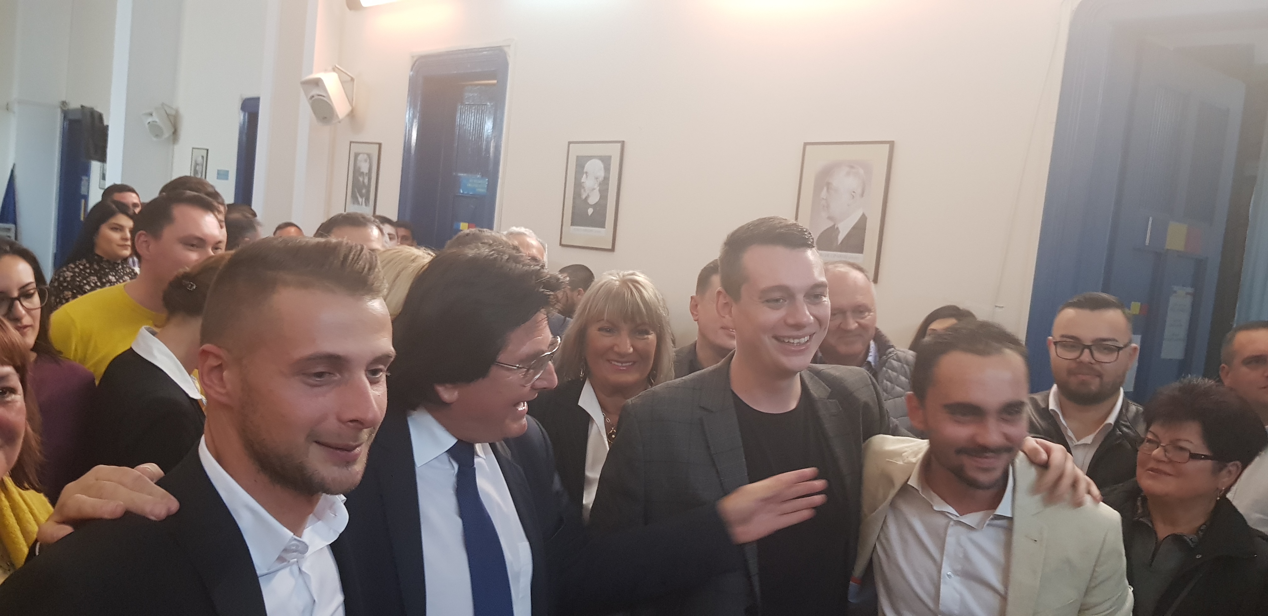 Primarul Timișoarei și-a intrat repede în rolul de organizator, aranjându-și coechipierii de partid în spatele său. La dreapta, relaxat și pe loc repaus, l-a avut pe viceprimarul Timișoarei, Dan Diaconu, iar în stânga sa pe secretarul general al partidului, Alin Popoviciu. Ioan Nasleu, omul de încredere al primarului, s-a ”topit” din sediul partidului cu vreo două ceasuri înainte de ora 21 după ce s-a plimbat cu un pahar în mână prin sediu. Ochii tuturor au fost ațintiți pe televizor și pe ceasul care se îndrepta spre ora la care se anunță primele rezultate, fără să fie luate în considerare voturile Diasporei. Klaus Iohannis – 39%, urmat de reprezentanta PSD, Viorica Dăncilă, la mare distanță. Nicolae Robu, frenetic, se scutură aplaudând, iar Alin Popoviciu strânge pumnul drept, asemenea unui microbist care a auzit fluierul final al unei partide câștigate de echipa sa. A urmat discursul președintelui timp în care, în sală, dintre membrii PNL Timiș a răsunat un puternic „pe ei, pe mama lor de comuniști”, atunci când Iohannis a subliniat înfrângerea administrată PSD-ului.