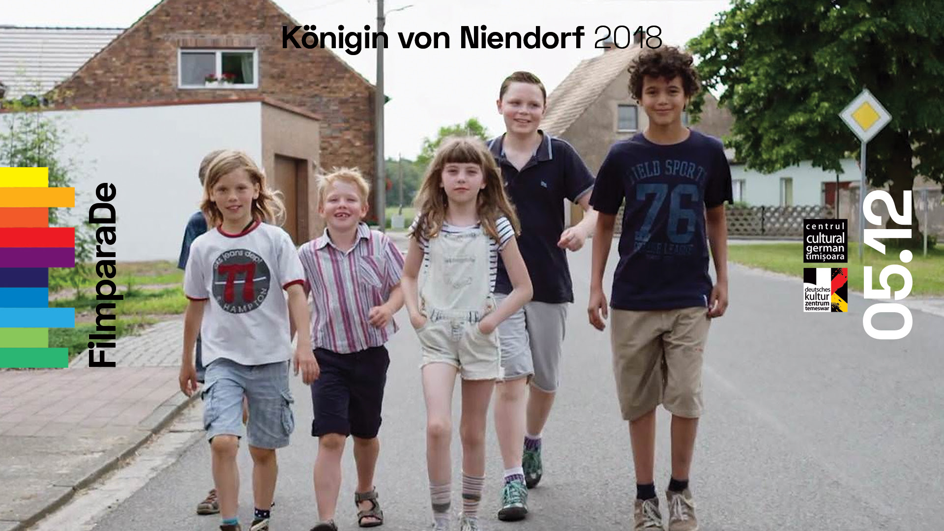 Seria filmelor FilmaraDE prezintă în 5 decembrie, de la ora 18.30, la ceainăria Cărtureşti, „Königin von Niendorf” (Regina din Niendorf), o întreagă aventură de vacanţă a unor copii care se mobilizează pentru a salva ferma unui muzician bătrân din Berlin pe care acesta a cumpărat-o într-un sat, atunci când primarul încearcă să-l oblige să o vândă.