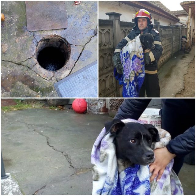 Pompierii sosiți la fața locului s-au chinuit câteva minute bune pentru a salva viața câinelor, mai ales din pricina faptului că fosa era îngustă. Animalul a fost salvat și readus în brațele stăpânei.