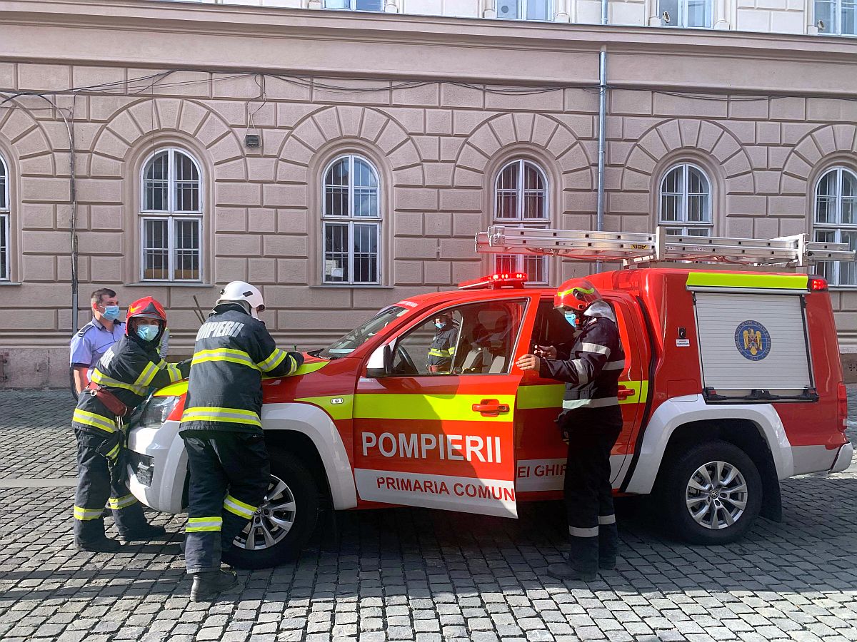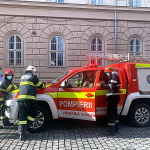 O mașină a luat foc în această seară, la Timișoara, chiar lângă Palatul Dicasterial, clădirea care găzduiește Parchetele și instanțele timișene.