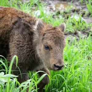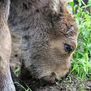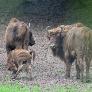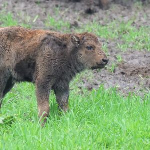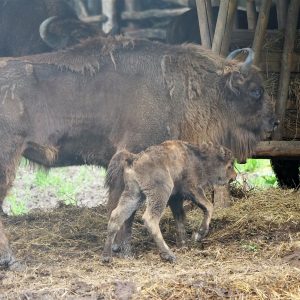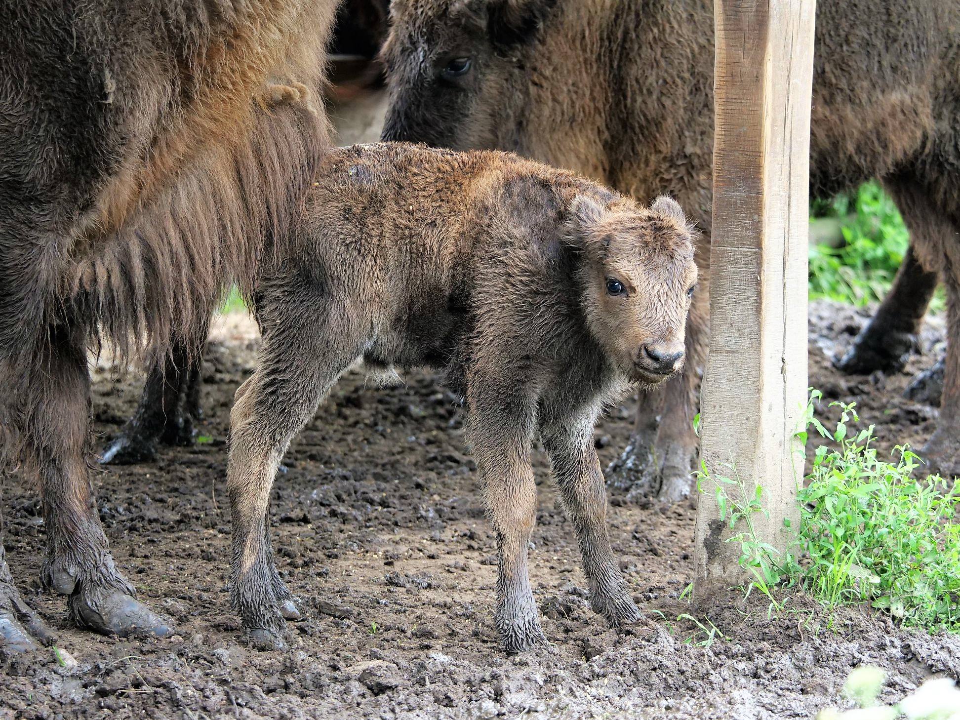 Cel mai tânăr membru al familiei de zimbri din rezervația de la Hațeg are doar 11 zile și este extrem de activ, așa cum se vede în primele imagini care au fost surprinse cu drăgălașul pui.